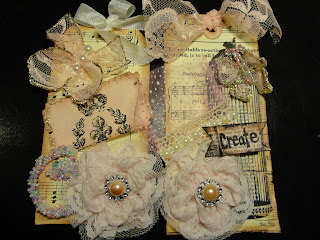 A few close up Pictures of the tags I've been working on my latest You Tube Project Turorial. I started my project last week by making a bunch of embelishments first without knowing what project to place them on.